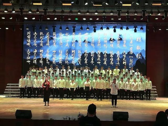 读懂诗人齐声共鸣,吐露字词渐入意境,“百人诵读”起承转合,精彩而纷呈。本次百人诵读分为两个环节,在第一环节中,和着悠长而又不失厚重的古典音乐,《短歌行》这样一首汉乐府的旧题响彻礼堂,诗音回荡洵美万千。崇德书院的百名学子气宇轩昂,齐聚一堂,踏着拍,用自己的声音和气质诵读出了崇德书院特有的那份风雅,以铿锵有力的气势,充沛饱满的感情,自信大方的形象赢得老师和同学们的阵阵掌声。百名学子诵读出了曹操“对酒当歌,人生几何”的惆怅、“青青子衿,悠悠我心”的思念、“周公吐哺,天下归心”求贤若渴。崇德书院的参赛形式也丰富多样,在表演尾声利用演唱的形式将《短歌行》的情感表达出来,歌声融入到朗诵中去,使形式更为新颖,吸引了观众的眼球。