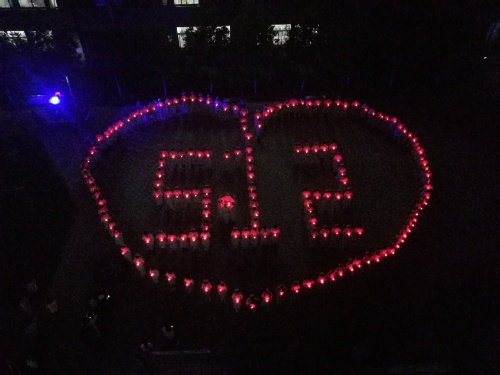 5月11日,同学们在淅沥的雨中,自发穿上护士服聚集到崇德书院广场,为遇难者祈福。同学们手持蜡烛,身上的护士服在烛火中显得更加纯洁,照亮通往健康的心灵彼岸。不久,广场已经站满了同学,同学们手持蜡烛摆成“5.12”图案和一颗勃勃的“爱心”,以此纪念汶川地震十周年,缅怀遇难同胞。