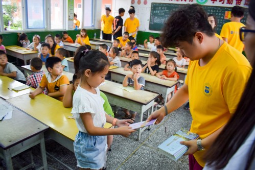 7月11日上午,在征得明德小学负责人同意后,团队成员开始在一楼的室内与孩子们聊天并做活动。做游戏,聊天、照看教室里的小孩子玩游戏。活动中,许多孩子都亲切地打招呼“姐姐好”、“哥哥好”,大家也情不自禁的抱起这些可爱的小孩子,给他们发放笔记本,画笔等小礼品。此外,还为他们开展课业辅导,在大家的关爱和帮助下,希望他们能够健康成长。