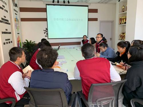 本次换届会议本着公平、公正和公开的原则,采用无记名投票的形式,由18名职工共同中选举出了3名新一届的崇德书院工会委员会委员。选举结束后,徐超代表学院向新一届委员会成员表示祝贺,并对书院工会工作提出了具体要求,希望新一届工会委员会不断努力,认寞履职、凝心聚力、团结进取,为开创书院工会工作新局面贡献力量。