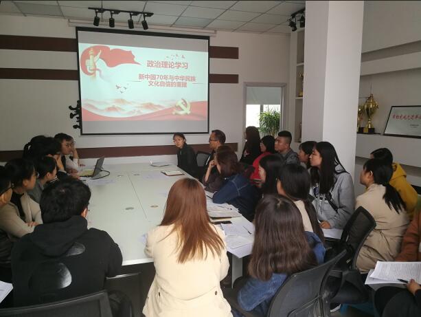 会议开始,由王越老师主持,他介绍了本次学习会议的主题是“新中国七十年与中华民族文化自信的重建”重要论述。2019年是新中国成立70周年,70年的探索和奋进,扎实奠定了社会主义文化发展的强大国力基础,极大地推动了全民族文化素质的整体提升,探索形成了文化兴盛的独特发展道路,促进了文化事业产业的繁荣发展,也进一步深化了我们推进社会主义文化强国建设的理论自觉。
