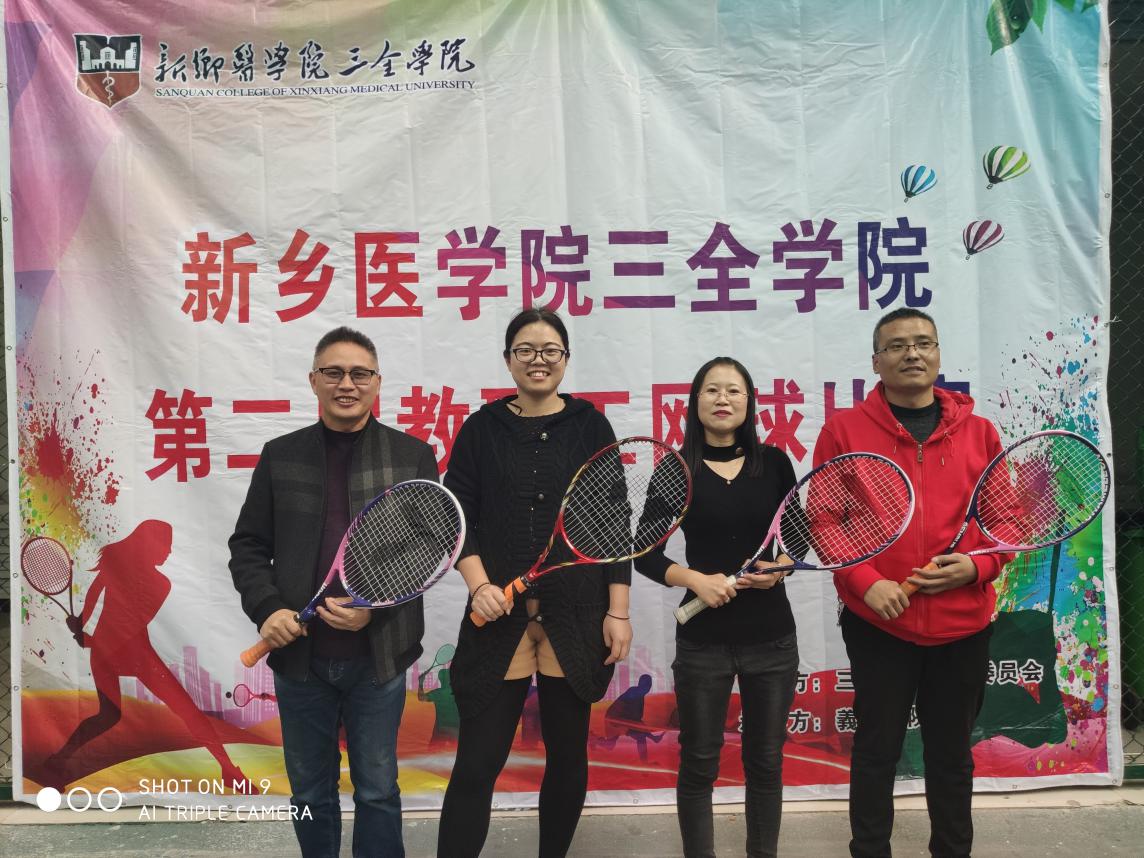 崇德书院工会苗江欢老师、尚千红老师、赵鹏老师、张励珂老师、王沥滢老师、周浩老师、牛晓冉老师积极响应号召,参加2019年11月12—15日在新乡医学院三全学院平原校区体育馆举办的第二届教职工网球比赛。