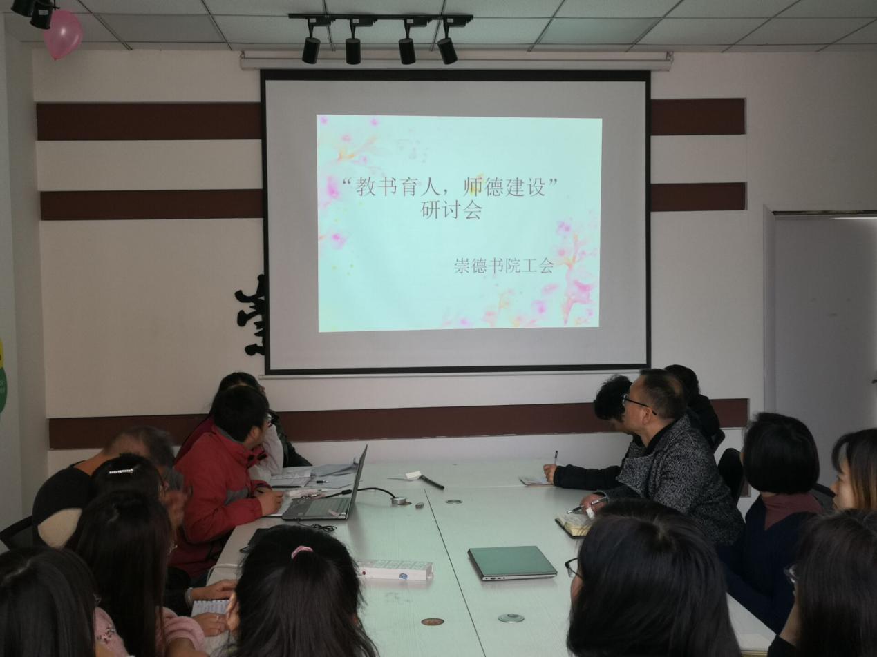 11月12日举办”爱岗敬业,教书育人”活动,崇德书院党总支书记徐超发表致辞,师德建设是教师队伍建设的重中之重,需要持之以恒、常抓不懈;师德建设既要弘扬优良传统,又要与时俱进赋予师德新的时代内涵,提出明确的具体要求;师德建设要充分发挥先进典型的示范带动作用,注意挖掘和宣传优秀教师的感人事迹。