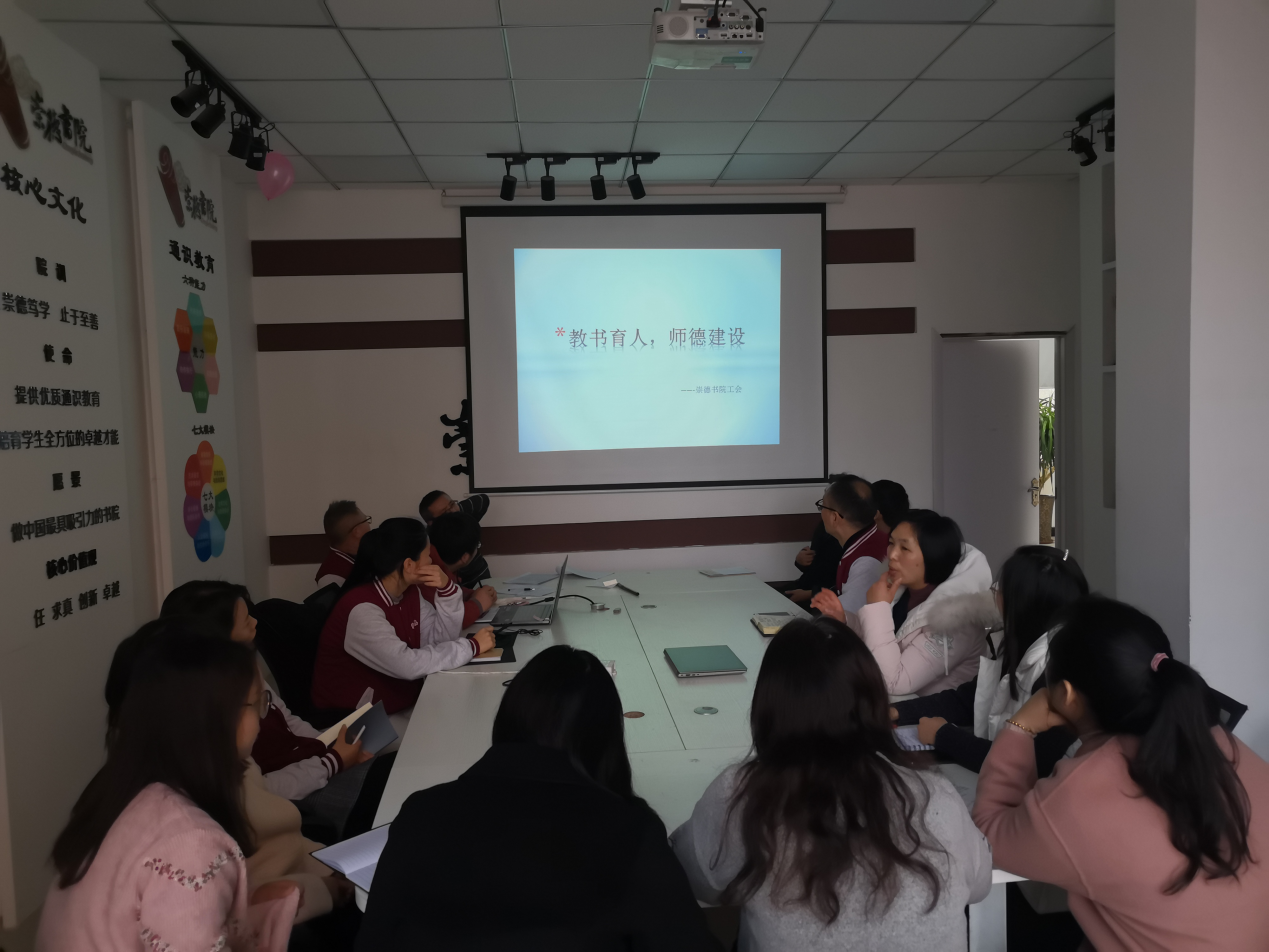4月3日在崇德书院会议室举办了关于的主“师德,教风,学风”题学习活动,由崇德书院党总支副书记杨翠苹主持本次活动,全体书院教职工参加了这次活动。