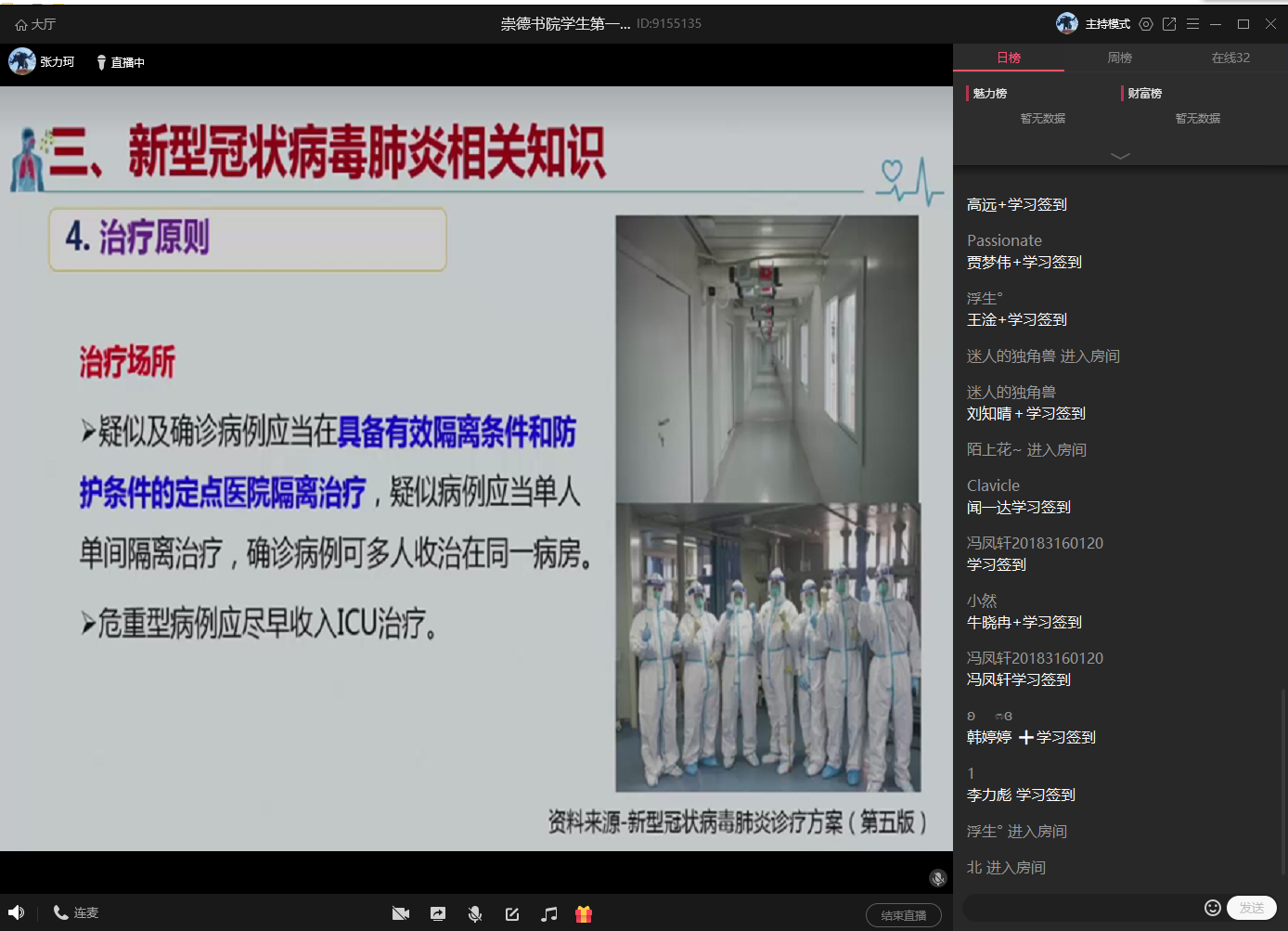 在书院党总支的部署下,各党支部相继展开主题党日和政治理论等学习活动。为积极响应习近平总书记对医学生的号召,崇德书院各党支部学生党员重温医学生誓言,各团支部积极开展医学生“请总书记放心”的线上发声活动。为向广大教职工和学生普及新冠肺炎疫情防控知识,有效推进学校整体疫情防控工作和师生返校前的卫生安全防护教育,崇德书院党总支组织开展学习河南省专家组录制的《高校新冠肺炎疫情防控知识》视频、疫情防控知识手册、同上一堂思政大课、学习雷锋精神等。