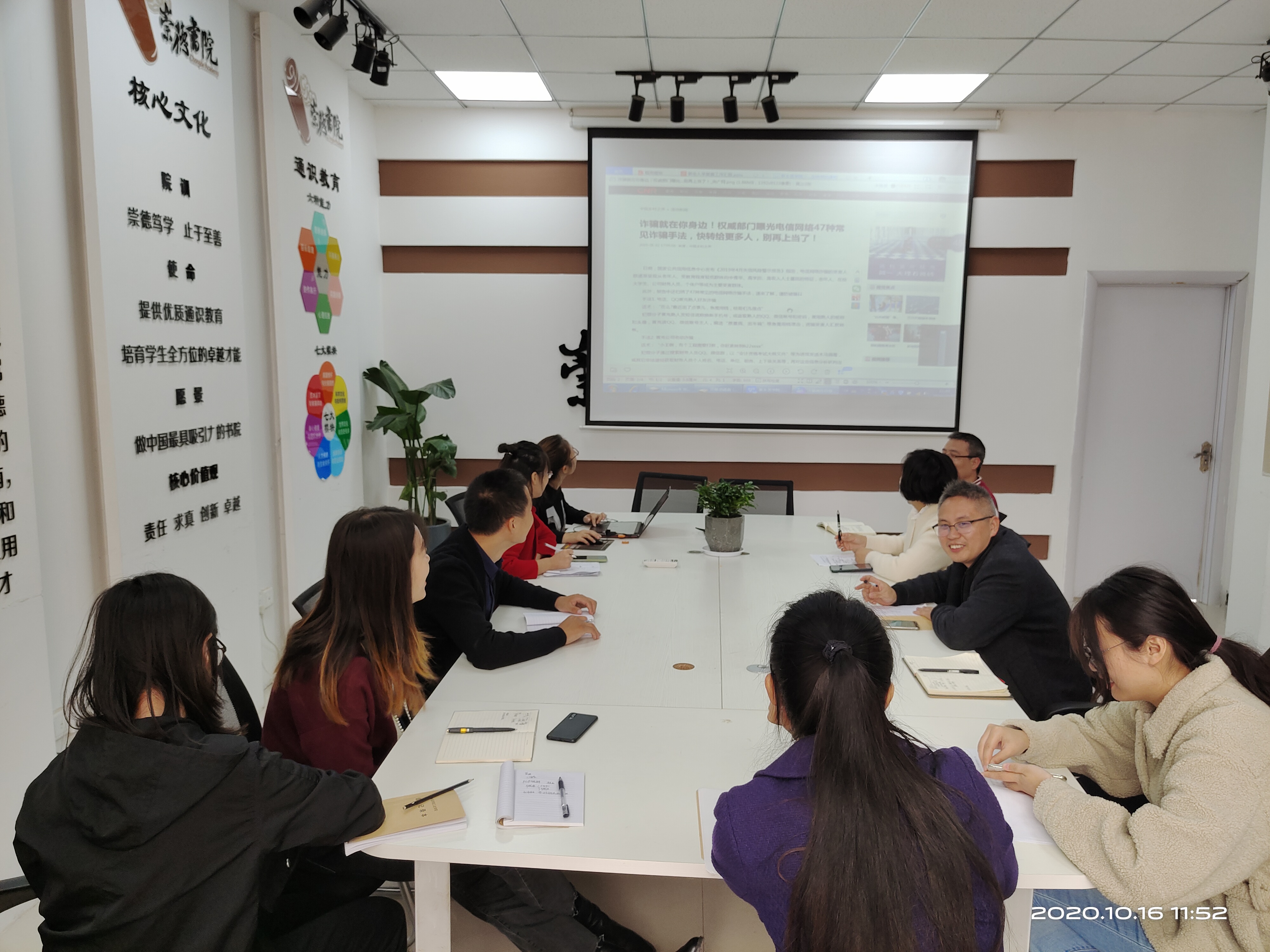 为普及校园防诈骗安全知识,10月16日,崇德书院党总支专门召开职工防诈骗安全教育会议,崇德书院党总支副书记杨翠苹详细为职工们讲解了电信网络47种常见诈骗手法。