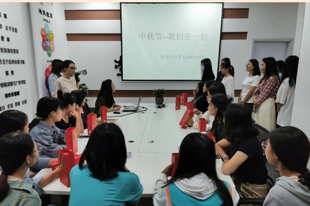除了举办中秋晚会,崇德书院各大班也举行了中秋节系列活动。护理学(专升本)174-177班召开“中秋节-我们在一起”的主题班会,与学生探讨中秋习俗以及中秋文化,师生共同度过了一个特殊而又难忘的中秋节。“之前听说过传统节日活动是我们书院的特色活动,今天和老师、同学们共同探讨中秋节习俗及文化,才了解到我们中秋节的文化内涵,增进了我们对中秋佳节历史传承和文化内涵的理解”,学生段志雪说。