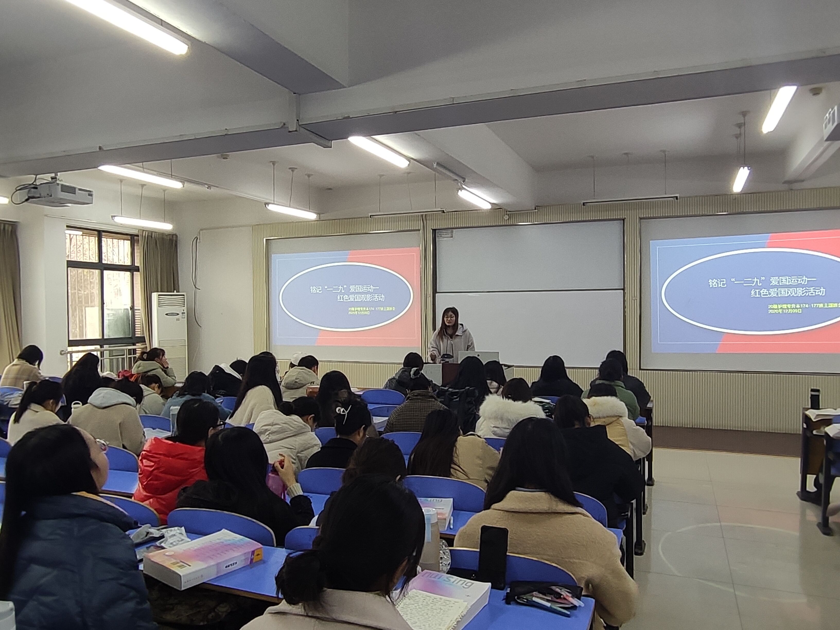 12月9日,崇德书院2020级护理学(专升本)开展了“铭记一二九爱国运动———红色爱国观影”之《北平以北》活动。观影过程中,一张张珍贵的照片、一段段真实的影像将同学们拉回那个抗日烽火燃遍全国,无数热血青年奋赴国难的年代。“今天我上了一堂生动的“历史课”,记忆深刻,热血沸腾,未来我一定会更加努力学习专业课知识,好好珍惜现在的幸福生活。”学生段志雪说。