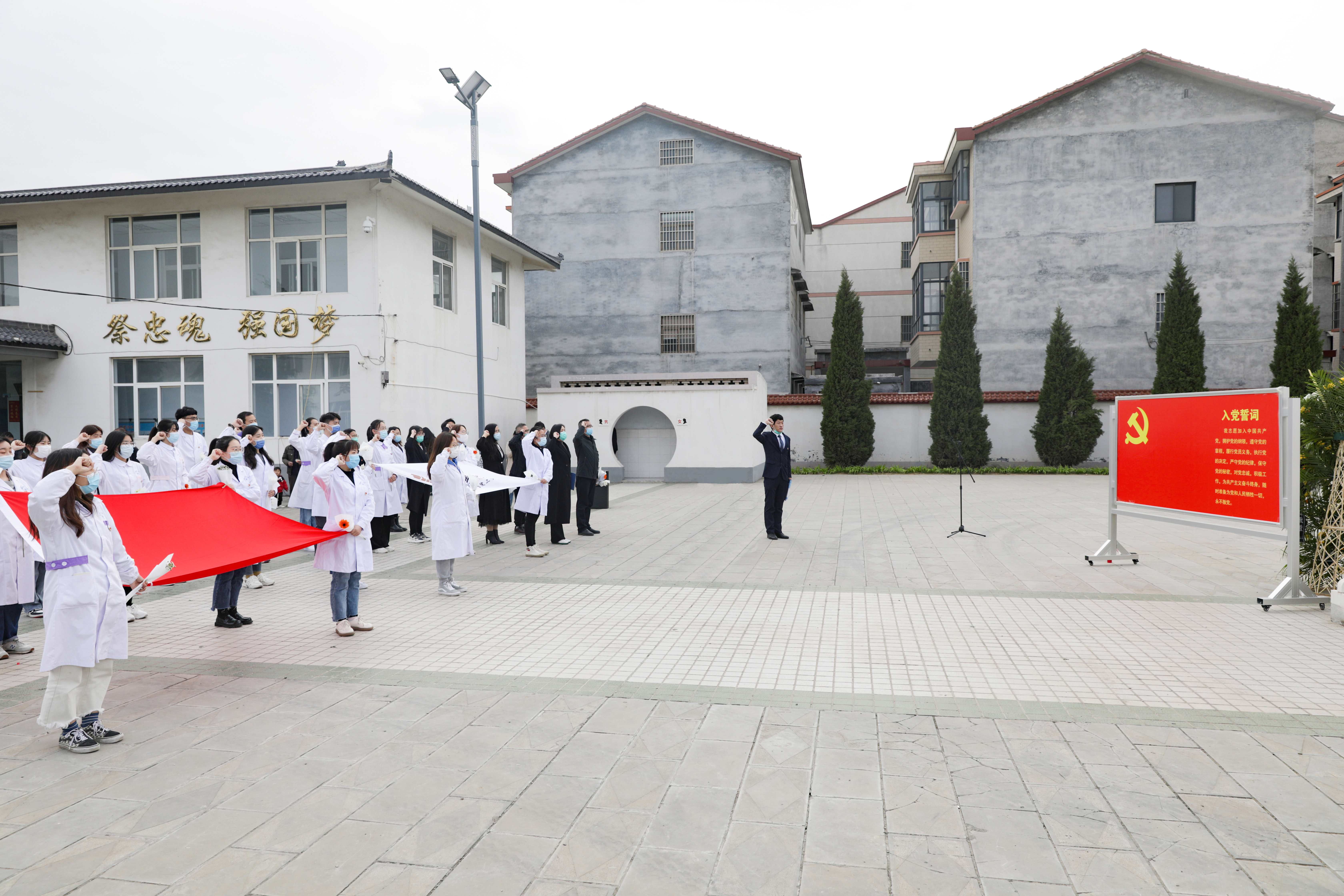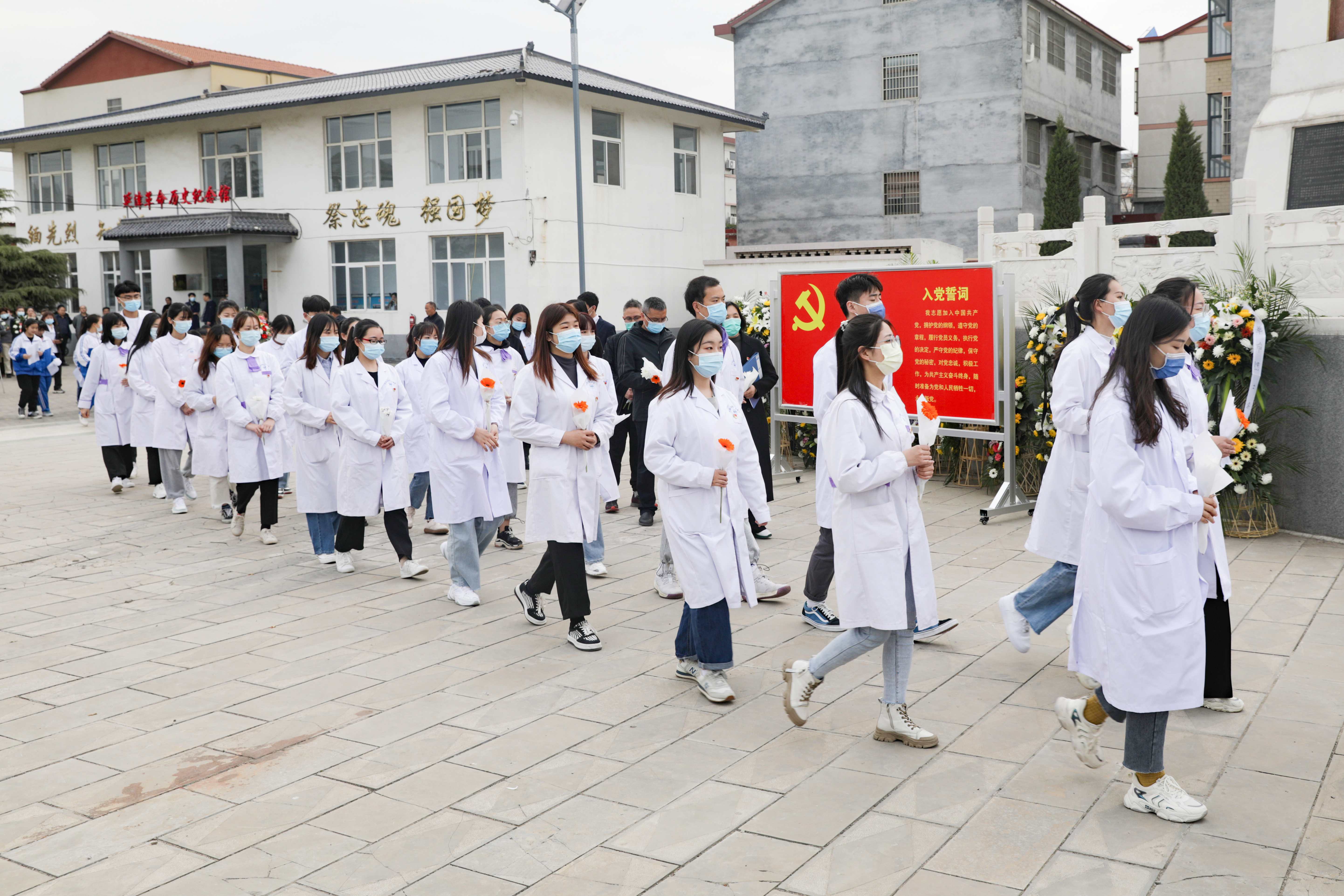 紧接着,全体党员在革命烈士纪念碑前肃穆而立,向烈士纪念碑鞠躬、默哀,表达对先烈的深深敬意和无限哀思。杨翠苹带领全体师生党员,面向党旗重温入党誓词,庄严宣誓,再一次接受党性的洗礼。“健康所系,性命相托。当我步入神圣医学学府的时刻,谨庄严宣誓:我志愿献身医学,热爱祖国,忠于人民,恪守医德,尊师守纪……”纪念碑前响起了医学生誓词,他们用医学生独有的方式向革命英烈表达崇高的敬意和深深地哀思。
