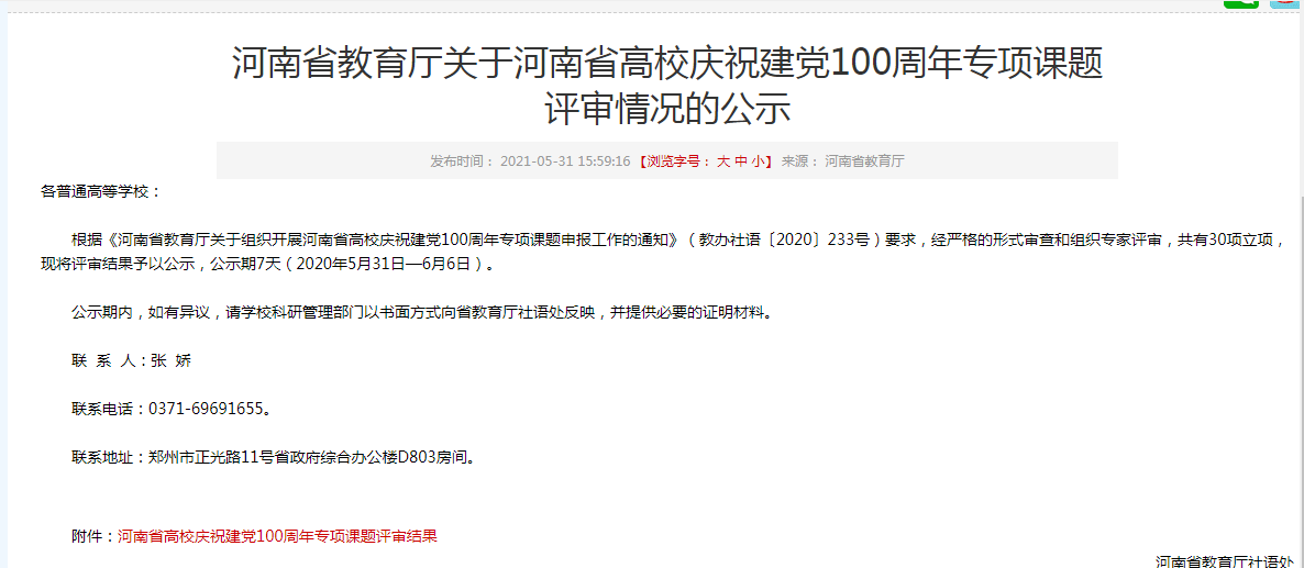近日,根据《河南省教育厅关于组织开展河南省高校庆祝建党100周年专项课题申报工作的通知》(教办社语〔2020〕233号)要求,经各高校评选推荐、资格审查、专家评审等,全省立项30项。新乡医学院三全学院崇德书院党总支副书记杨翠苹主持申报的《论“高势位”社会主义先进文化建设的价值与实现—以学党史传承中华优秀传统文化》获批立项。