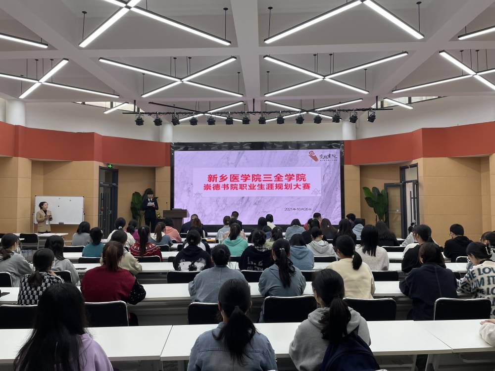 为更好地推动大学生职业生涯发展教育的开展,帮助大学生转变就业观念,明确职业目标,树立正确的择业观、就业观和成才观,10月26日,在智行书院多功能报告厅举办了“逐梦青春 职击未来”职业生涯规划大赛。出席本次活动的有健康管理学院常务副院长王耀峰,崇德书院党总支副书记杨翠苹,崇德书院创新创业导师张展召、王森,以及崇德书院院务主任张晟烨。