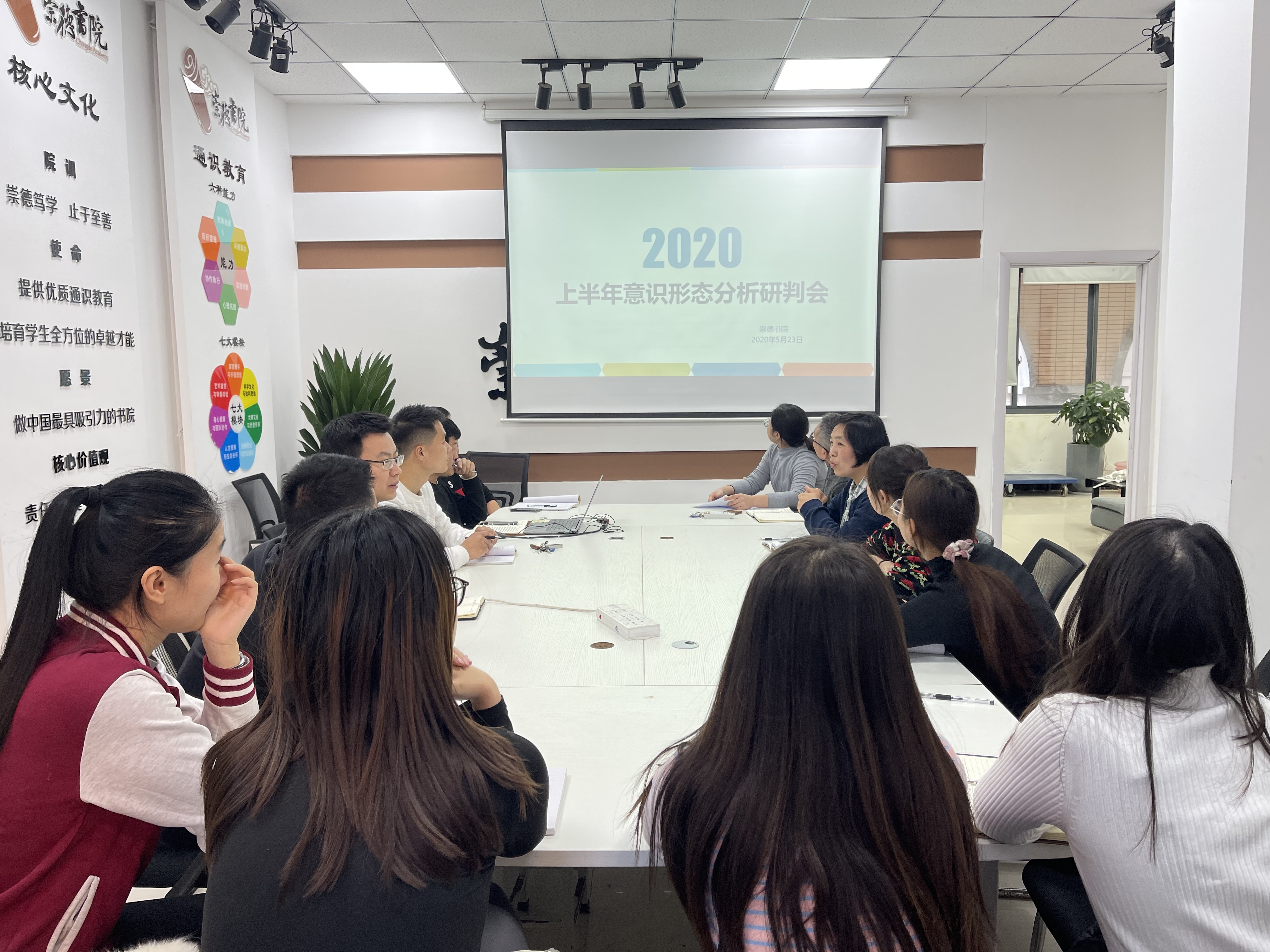2020年5月23日,在崇德书院会议室召开了“2020年上半年意识形态分析研判会”。会上大家集中学习了“习近平总书记关于意识形态工作的重要论述”各对口老师结合各自工作实际,围绕崇德书院上半年度宣传思想和意识形态工作的主要做法、存在的问题及下一步打算,对意识形态工作了分析研判。