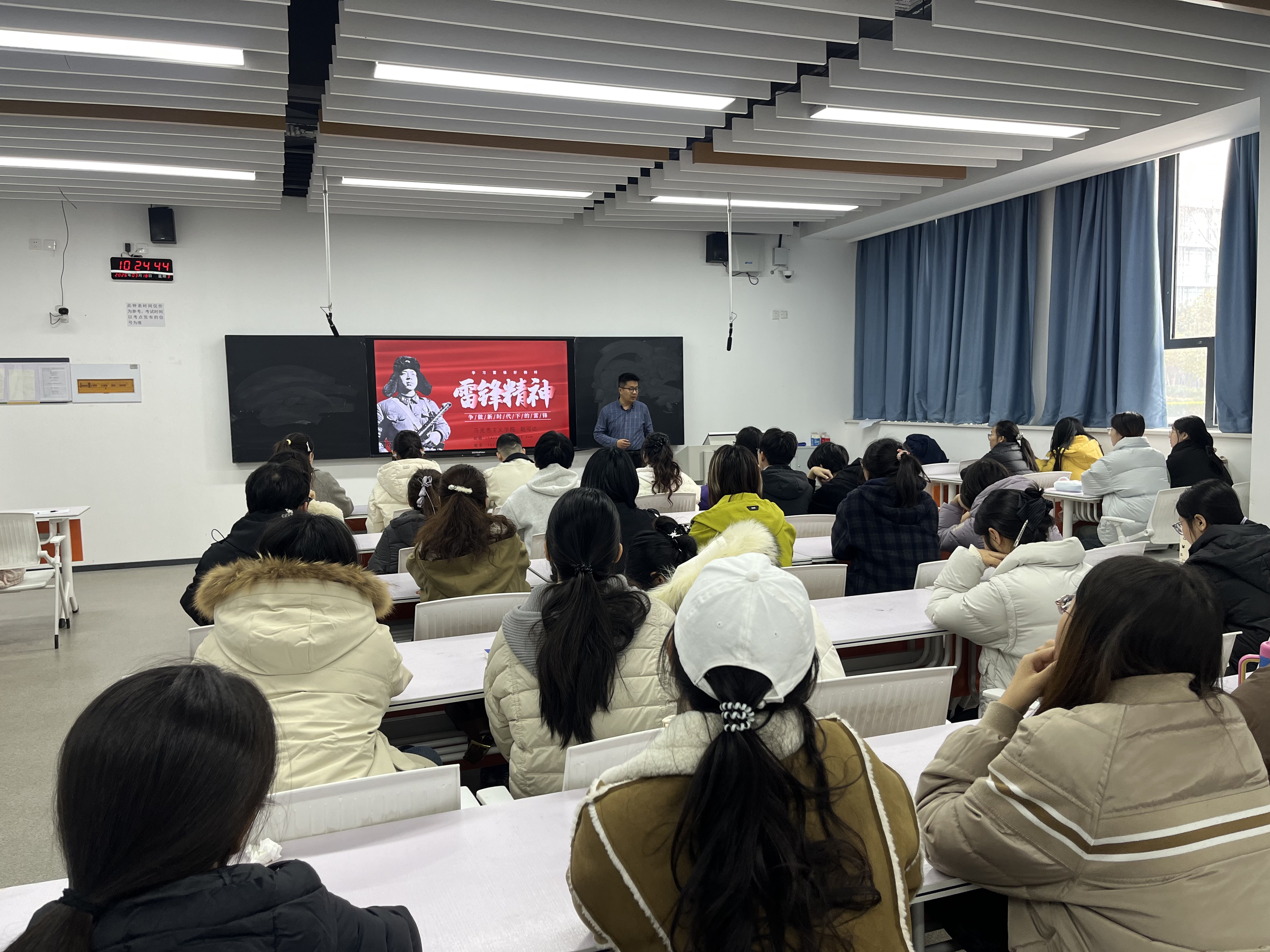 党课紧扣雷锋精神的时代价值与医者使命,赵可达从认识雷锋、精神解码、医者共鸣、躬身实践四个维度系统授课,带领大家重温雷锋成长历程与先进事迹,深刻解读“钉子精神”“螺丝钉精神” 的精髓要义,系统阐释雷锋精神所承载的奉献、敬业、创新、奋斗精神内核,引导学生党员在感悟榜样精神中坚定理想信念,在传承红色基因中铸牢初心使命。